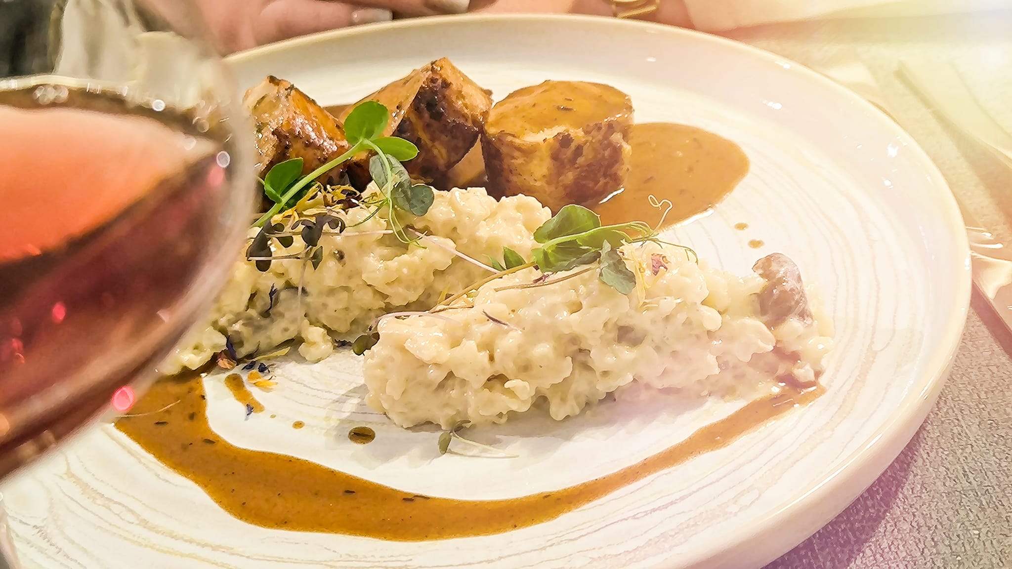 Le Chef concocte des plats savoureux qui peuvent être accompagnés d’une sélection de champagnes et de vins de la région.