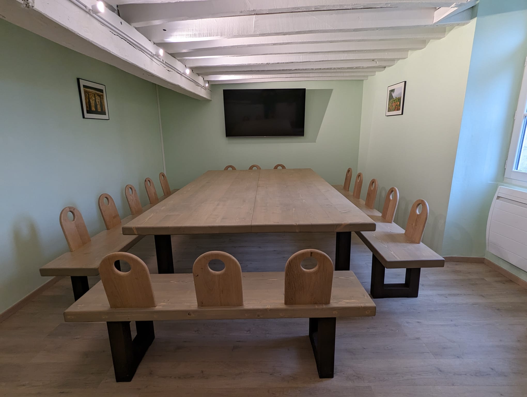 - Le gîte est situé au premier étage, au-dessus des salles polyvalentes.