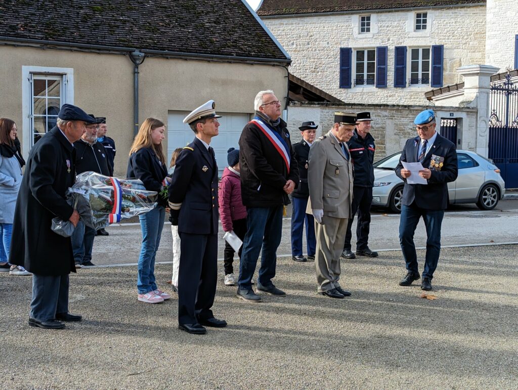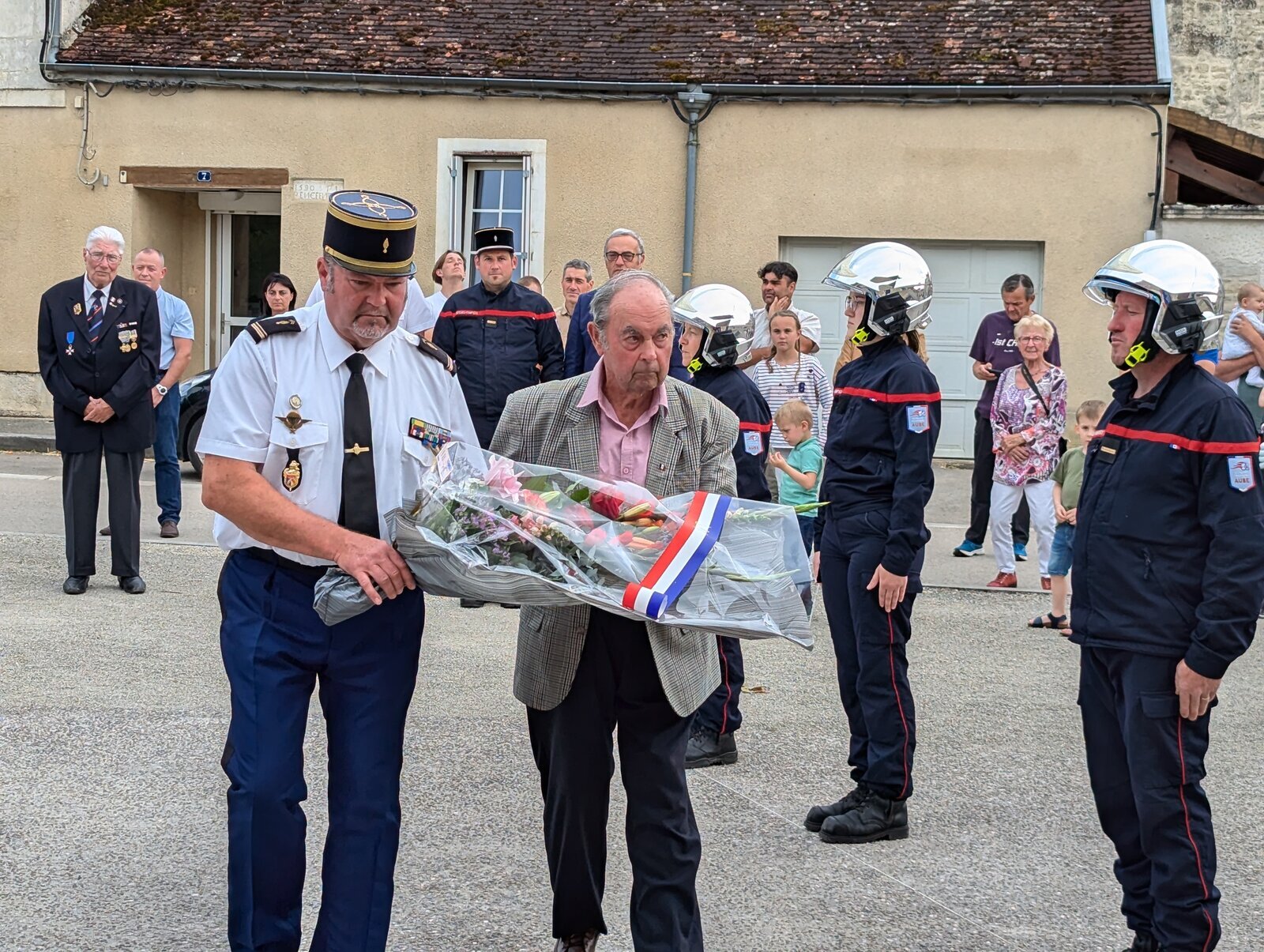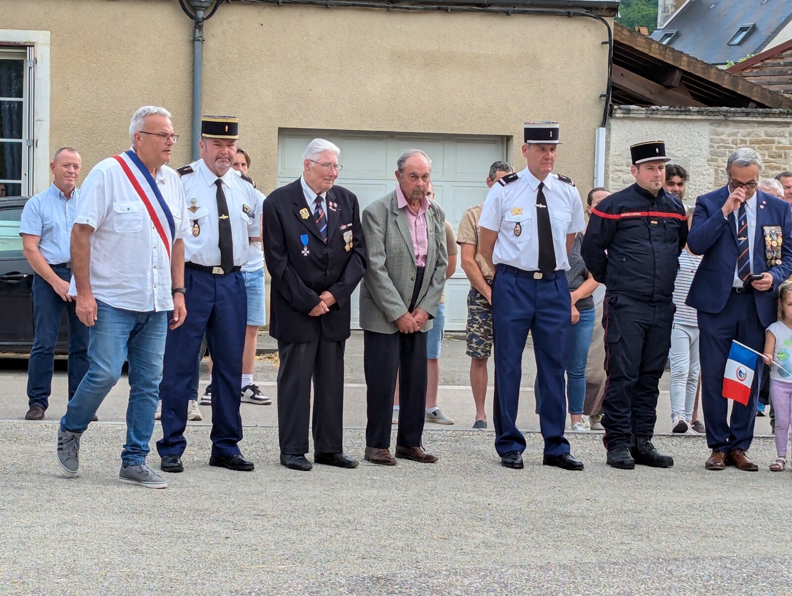 Avaient également répondu à l’appel, les associations d’anciens combattants, UNC et Souvenir Français, avec leurs portes-drapeaux, membres et représentants respectifs, Jean-Luc Grosjean et Patrice Romary, la gendarmerie, représentée par l’Adjudant-Chef Emmanuel Breuil et ses personnels, les sapeurs pompiers sous le commandement de Christophe Chabot, les représentants du monde associatif, et les élus du Conseil Municipal.